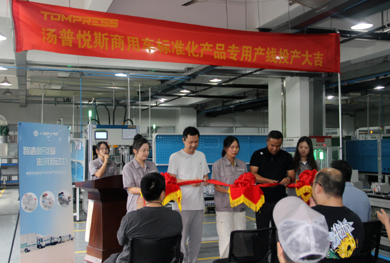 2025年8月14日,湖南汤普悦斯压缩机科技有限公司举行商用车标准化产品专用产线投产仪式。汤普悦斯总经理李博、战略合作伙伴地上铁副总裁袁果、地上铁产品供应链中心副总经理李文普、长江轻商总经理王健、厦门金龙轻商事业部战略客户总监朱枫、武汉理工同宇董事长助理汤志恒等产业链核心伙伴共同出席见证。该产线的启用标志着汤普悦斯在商用压缩机领域的产能与交付能力迈上新台阶,月产能突破3万台,为新能源物流车市场提供强有力的规模化供应保障。仪式上地上铁副总裁袁果表示此次产线投产,将进一步强化双方在技术适配、供应保障与全生命周期服务上的战略同盟关系,全体嘉宾随后深入智能化车间参观交流。